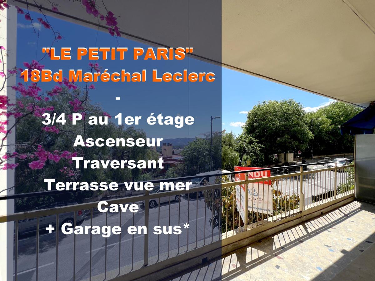 GRASSE, 18 Bd Maréchal Leclerc. 3/4 pièces, terrasse vue mer dégagée, cave + garage en sus