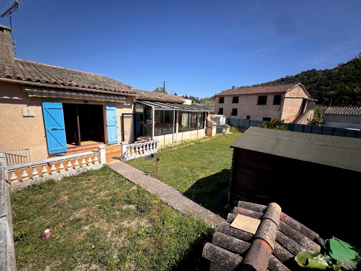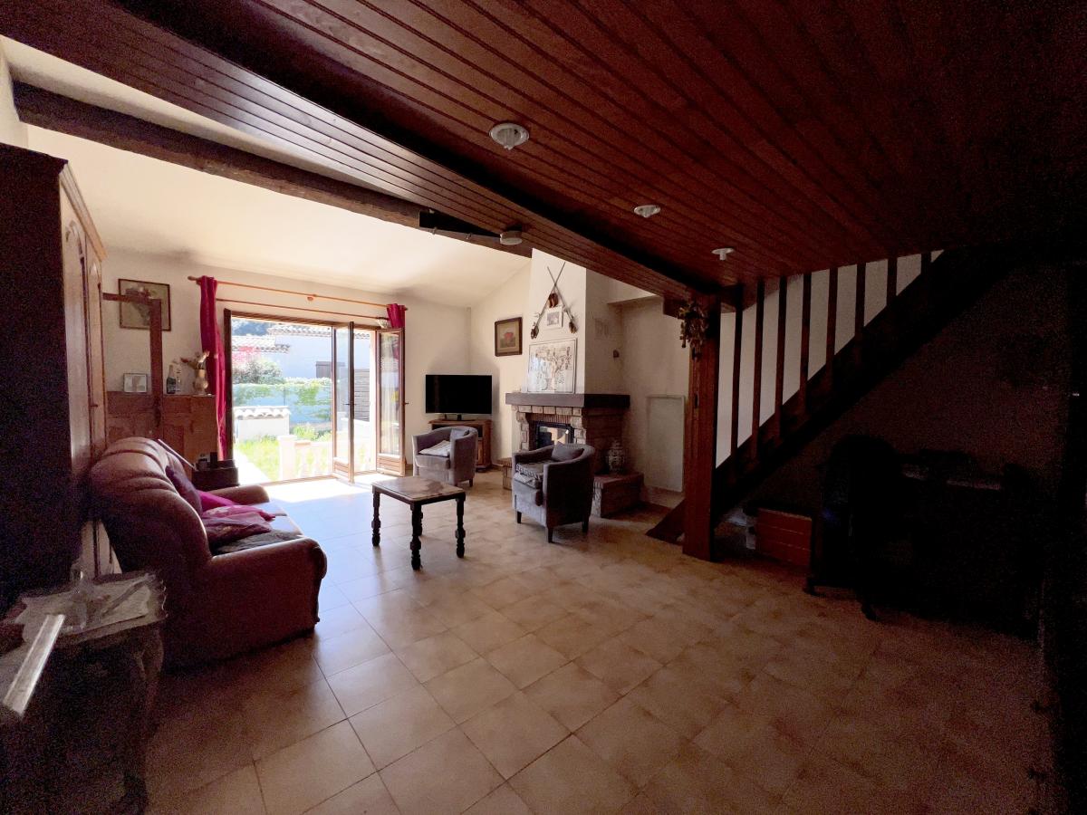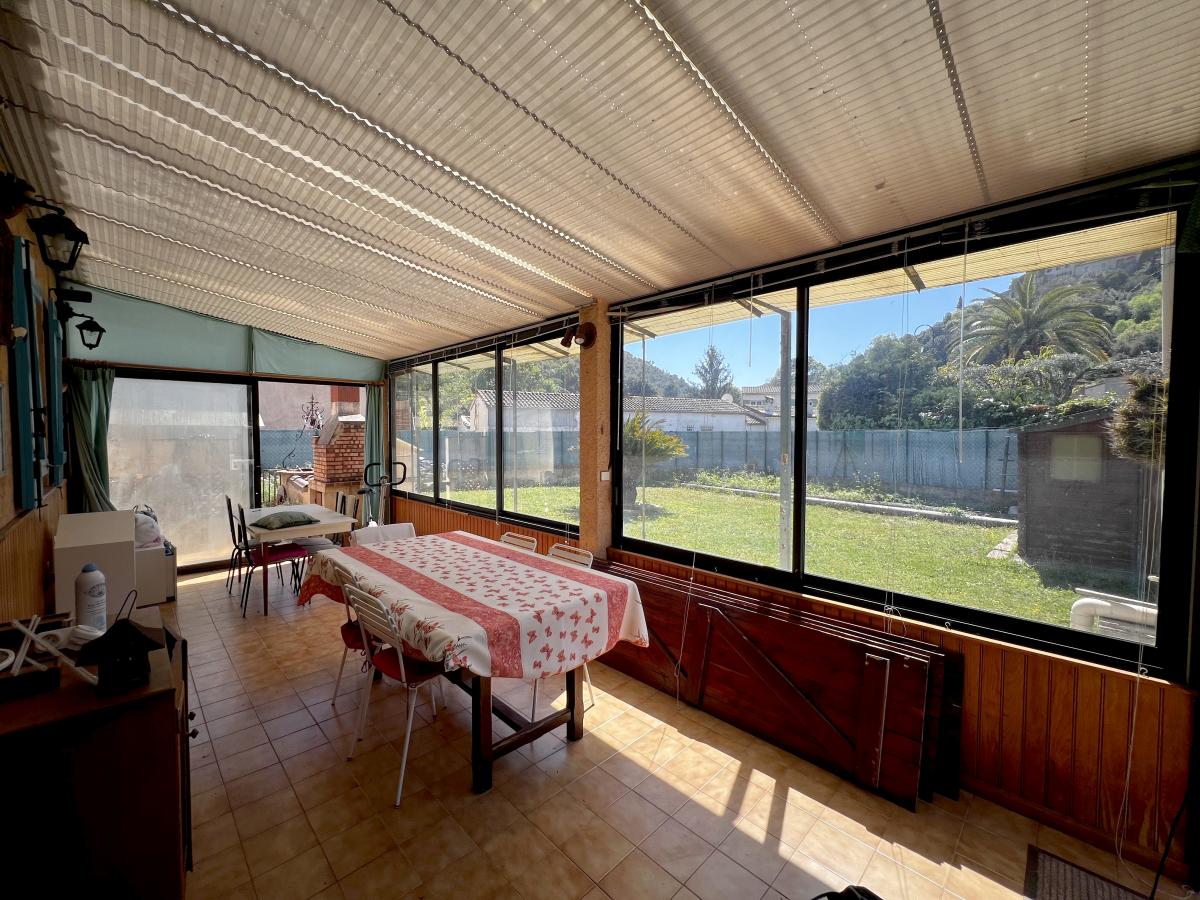 La maison dispose également d’une véranda d’environ 21 m², d’une terrasse, ainsi que de plusieurs dépendances extérieures, dont un garage, un cabanon et différents espaces de rangement. Le garage est accessible directement depuis l’intérieur de la maison.